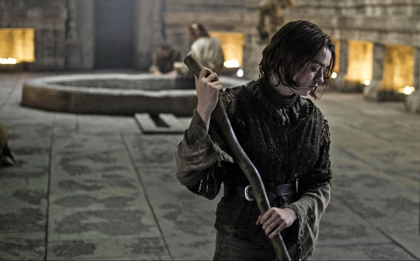 We open on the House of Black & White… also known as the House of Perpetually Dirty Floors. Arya rebels against her sweeping duties and demands they get a Roomba.