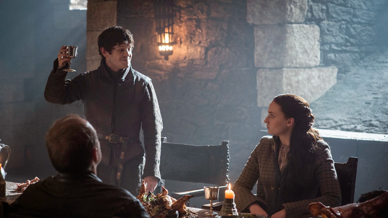 Later though, we get such a nice father-son bonding moment between Roose and Ramsay Bolton that I forgot I was watching Thrones. It’s these quiet scenes that remind me of the good— you hanged WHO’s husband then did WHAT under the same tree? Thank the gods GRR Martin did not write the tv show How I Met Your Mother.